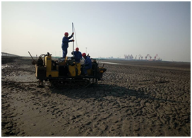 根据工程要求、地层特点及拟采用的基础形式,勘察手段采用了钻探、标准贯入试验、波速测试、十字板剪切试验及扁铲侧胀试验,关键环节照片详见图2-图6。土工试验项目包括含水量试验、界限含水量试验、比重试验、直接快剪试验,固结快剪试验、三轴固结不排水剪切试验、颗分试验(筛分法、水析法)、水质简分析及土的易溶盐试验、室内渗透试验(水平、竖直)、无侧限抗压强度试验(原状土)等。