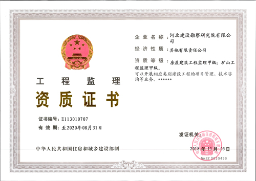 公司获得矿山工程监理甲级资质证书