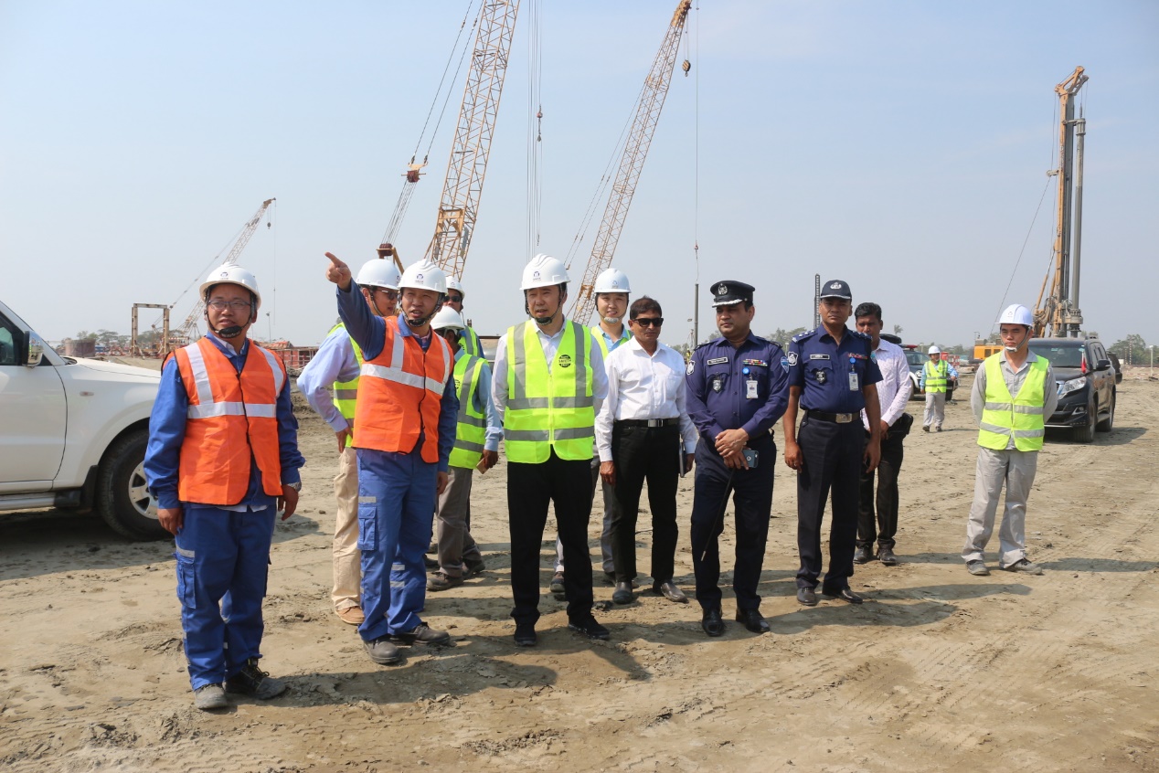 2019年2月23日,驻孟加拉国特命全权大使张佐莅临我公司孟加拉吉大港艾萨拉姆超超临界燃煤机组桩基工程施工现场进行视察。公司驻孟加拉办事处主任李福来、项目经理丁伟和EPC总包单位山东电建三公司部分员工以及吉大港市警察局最高警司全程陪同。