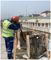 受江苏省泰州市城市基础设施建设发展有限公司的委托,我公司承担了京泰路南延(海姜大道-凤凰路)工程施工基坑监测任务。京泰路南延工程(海姜大道-凤凰路)基坑最大开挖深度为13.8m,底宽3.3m,长5.37km。一般道路段、河道平直段支护形式采用SMW工法桩+1道钢支撑,桩长15~18m;入河渐变段与交汇井段支护形式采用SMW工法桩+2道钢支撑,桩长18~21m;高压线附近支护形式采用钻孔灌注桩+1道钢支撑,桩长12m。基坑周边主要为农田、村镇住宅等,基坑穿过前进河、大冯河及大寨河三条河流,且穿过村镇的水泥路以及沥青路,海姜大道南边绿化带、浙江路、迎春东路北侧有地下管线等,周边环境复杂。工程主要监测项目包括:桩顶水平、桩顶垂直位移、深层水平位移、支撑轴力、地表沉降、建筑物沉降倾斜、管线沉降、管线水平位移、地下水位、坑底隆起等,通过现场监测信息分析,为各方提供及时、准确的监测数据。