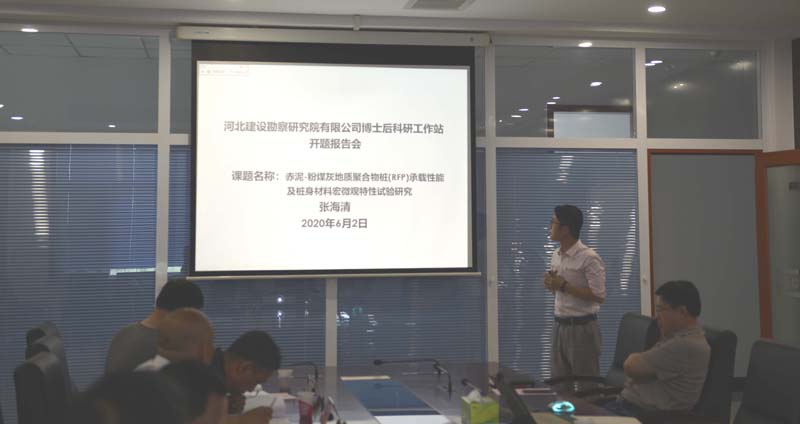 2020年6月2日下午,公司博士后工作站举办博士后研究人员张海清的开题报告会。由博士后工作站站长聂庆科正高级工程师、河北省建筑科学研究院副院长王维玉正高级工程师、北京交通大学白冰教授、河北科技大学张亚通教授、河北省生态环境厅谢剑锋正高级工程师组成专家组,对张海清博士研究的《赤泥-粉煤灰地质聚合物桩(RFP)承载性能及桩身材料宏微观特性试验研究》开题报告进行了评审,公司总经理李华伟、省人力资源和社会保障厅、市人力资源和社会保障局有关领导参加了报告会。