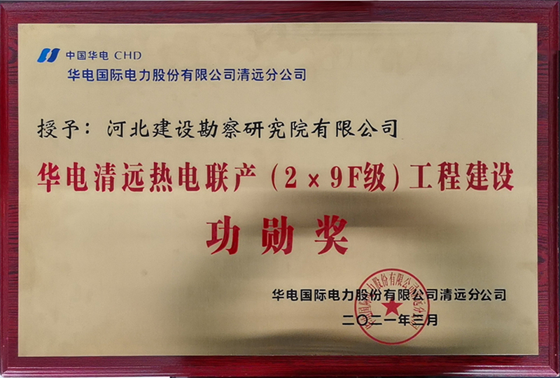 我公司荣获华电清远热电联产(2×9F级)工程建设功勋奖