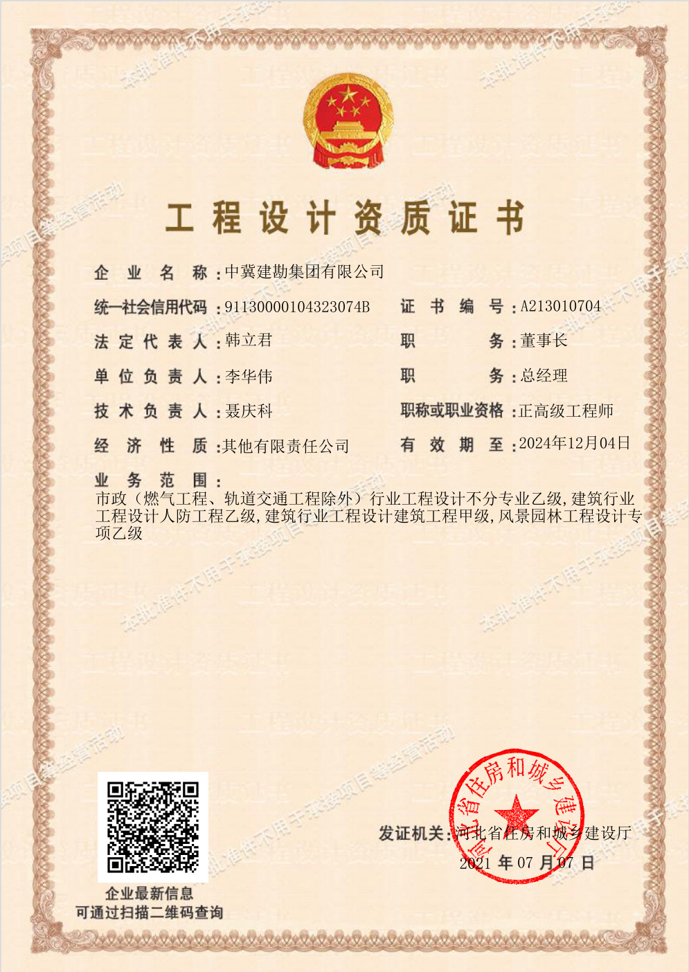 公司于2021年7月7日取得了风景园林工程设计专项乙级资质证书,可承担中型以下规模风景园林工程项目和投资额在2000万元以下的大型风景园林工程项目的设计。