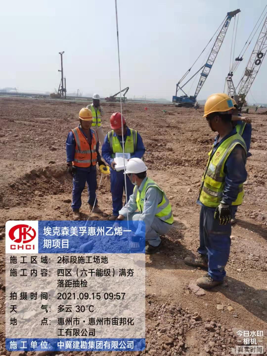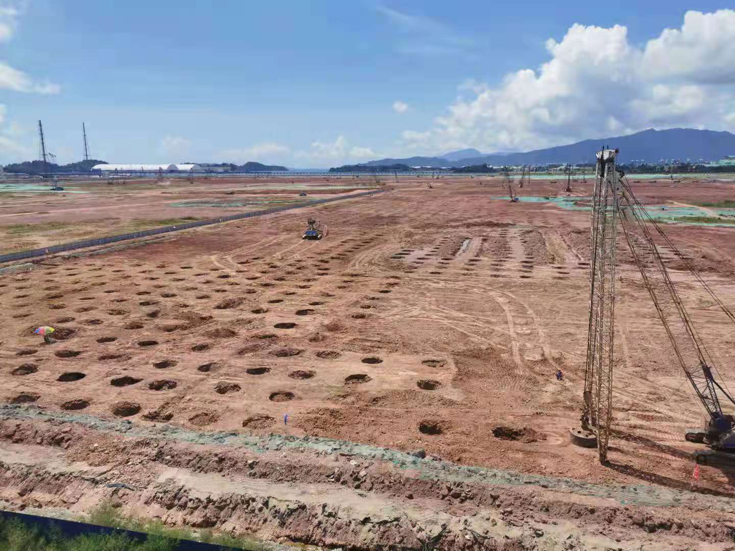 本工程位于广东省惠州市。受埃克森美孚(惠州)化工有限公司委托,我公司承担强夯施工项目。本项目主要施工内容为现场夯点的布置、现场夯点的测放、夯机的就位、夯坑的验收及夯坑的回填、满夯的控制、满夯后整个场地的整平及验收。其中4000KN·m强夯面积27866㎡,6000KN·m强夯面积334533㎡,8000KN·m强夯面积32090㎡。