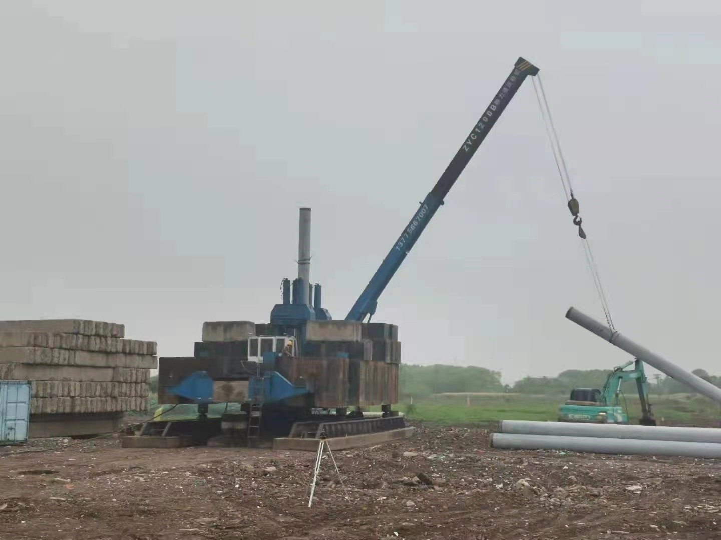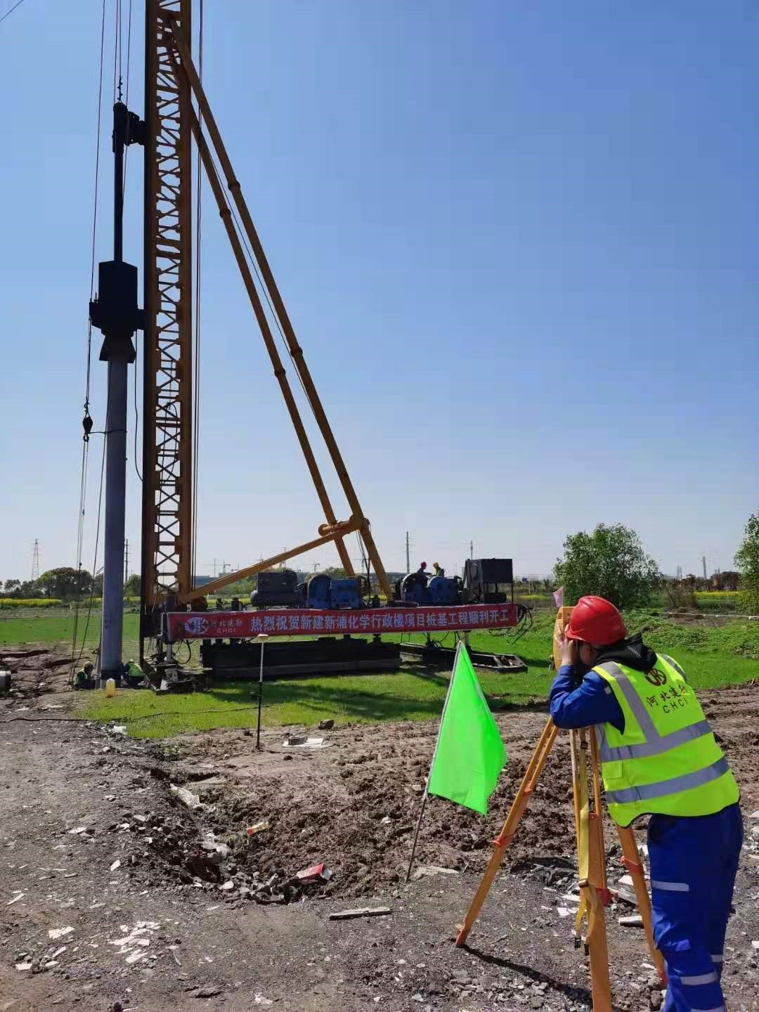 新建新浦化学行政楼(研发科创)项目位于江苏省泰兴市滨江镇,由新浦化学(泰兴)有限公司投资建设,我公司负责场平工程及桩基工程施工(含试桩)。主要工作内容包括行政楼主楼和地库全部桩基础,共计预应力管桩1249根,其中314根桩桩径为0.6m,935根桩桩径为0.5m,累计施工预应力管桩延米数24016m³。