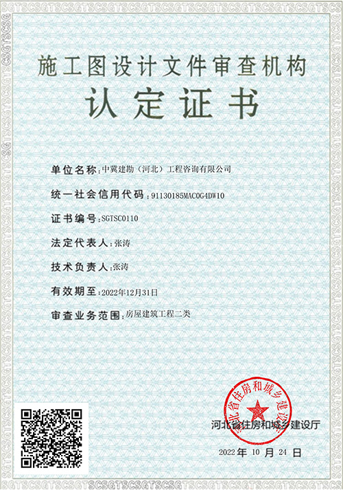 我公司全资控股子公司——中冀建勘(河北)工程咨询有限公司,于2022年10月24日取得施工图设计文件审查机构认定证书,可承接二级及以下房屋建筑工程的施工图审查业务。随着施工图设计文件审查机构认定证书的取得,为我们进一步积极开展市场经营工作,努力将施工图审查业务打造成为新的经营创收增长点,提供了新的契机和基础。