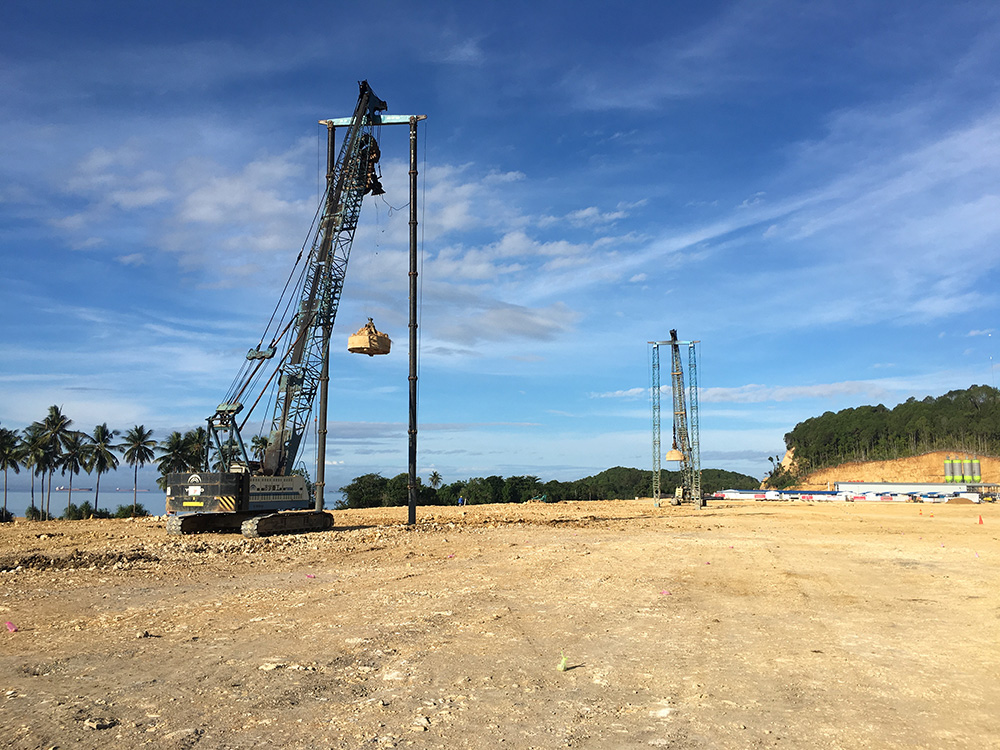 本项目位于印度尼西亚东加里曼丹省,由PT.KOBEXINDO CEMENT投资建设,我公司负责本项目强夯施工。施工地层由人工填土层、粘土、粉质粘土、细砂、石灰岩组成。