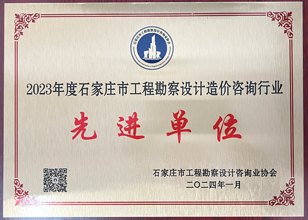 近日,石家庄市工程勘察设计咨询业协会下发《关于表彰2023年度石家庄市工程勘察设计造价咨询行业先进单位和先进个人的通知》(石设协字【2024】3号),我公司被授予“2023年度石家庄市工程勘察设计造价咨询行业先进单位”称号,韩立君同志、商卫东同志被授予“2023年度石家庄市工程勘察设计造价咨询行业先进个人”称号。