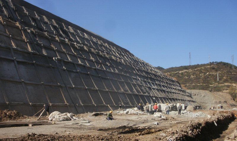 我公司承担厂外煤场挖方区边坡工程A区段,总长195m,最高点35m,形状修整为4个马道、5个坡面。工程内容分3部分:①支护工程;②护坡工程;③排水工程,三部分共同组成边坡治理系统工程。