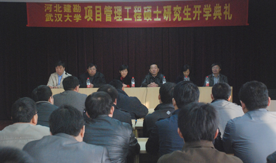 11月9日,武汉大学项目管理硕士研究生开班典礼隆重举行,武汉大学土木建筑工程学院徐院长、何院长、王老师和张老师,我公司梁总经理、聂总工程师参加了开班典礼。