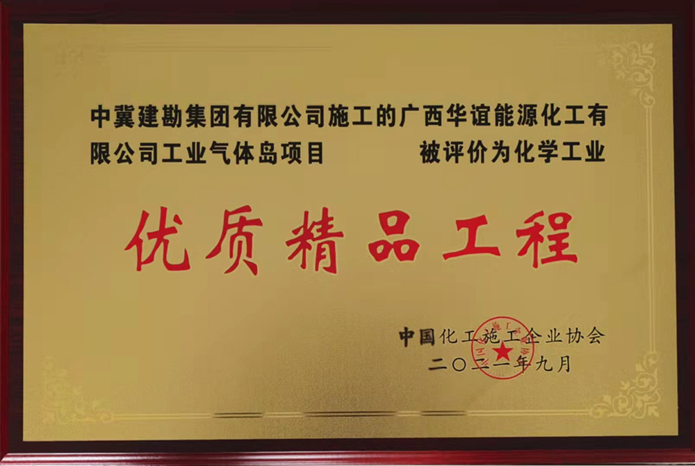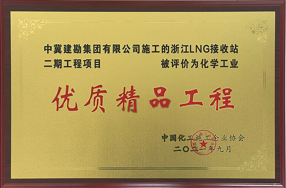 Recently, two projects constructed by our company, which are “Zhejiang LNG Receiving Station Phase II Storage Tank Pile Foundation Project” and ”Industrial Gas Island Project of Guangxi Huayi Energy and Chemical Co., Ltd”, won the "Quality and Excellent Project" award issued by China National Association of Chemical Construction Enterprises.