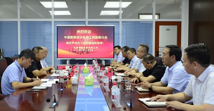 On June 5, 2025, Mr. Xu Hongsheng, President of the Geotechnical & Engineering Survey Committee of the China Engineering & consulting Association, led a delegation to the Group Company for research and guidance. The delegation was received by Mr. Li Huawei, Chairman of the Group Company; Mr. Liu Liping, Deputy General Manager; Mr. Nie Qingke, Chief Engineer; Mr. Hu Jianmin, Chief Economist; Mr. Li Youdong, Chairman of the Board of Supervisors; Mr. Liang Jinguo, President of the Hebei Engineering Investigation, Design and Consulting Association; and other executives. Together, they engaged in in-depth discussions on innovation-driven development in the engineering investigation industry and strategic planning for the 15th Five-Year Plan period.