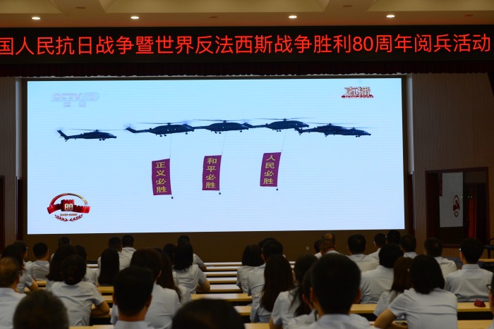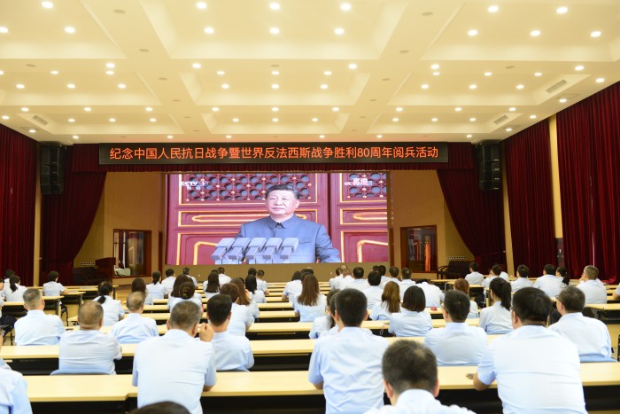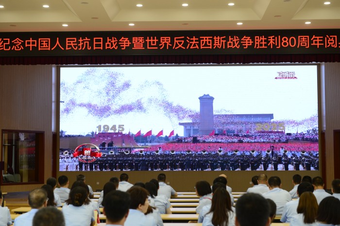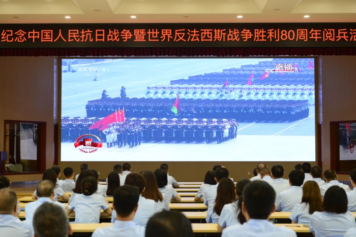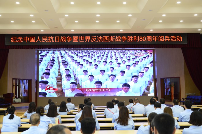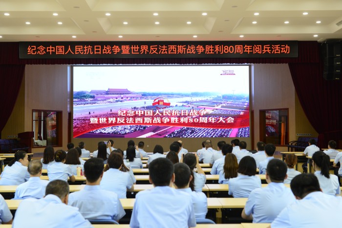 At 9:00 AM on September 3, the Group Company organized nearly 150 staff to gather in the fifth-floor conference hall of the Shijiazhuang office building to collectively watch the live broadcast of the "Commemorative Meeting Marking the 80th Anniversary of the Victory of the Chinese People's War of Resistance Against Japanese Aggression and the World Anti-Fascist War."